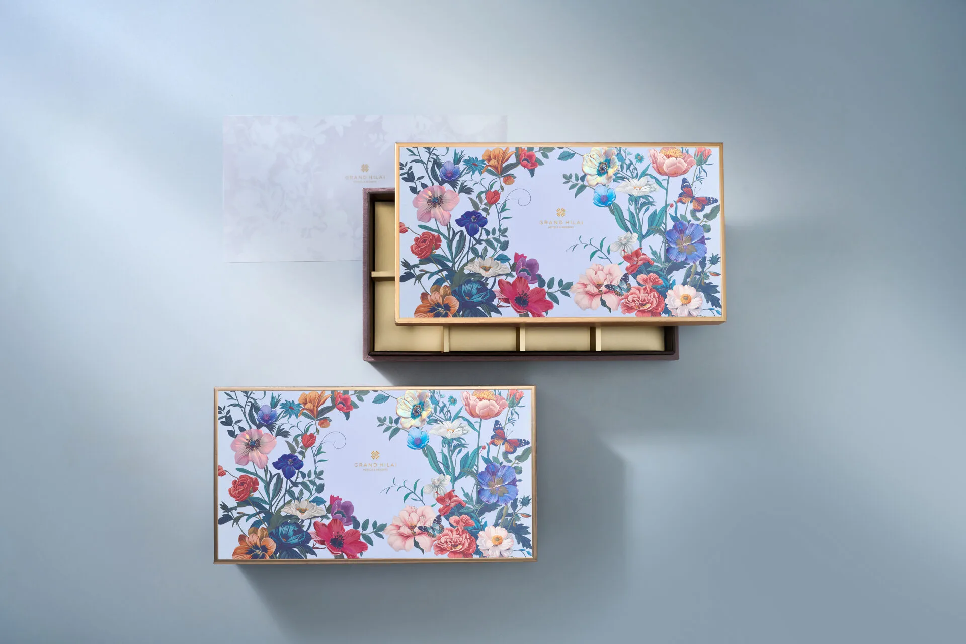 作品名稱:漢來中秋禮盒作品類別:禮品包裝類設計:瑞鎧包裝 – 周純誼設計理念:以歐式花卉「秘密花園」作為主要設計風格呈現,將象徵典雅與生命力的復古歐風花園,在同一張紙上做出不同層次的美感,並加上立體雕刻的工藝,結合花卉、植物、蝴蝶之間的自然之美,描繪繁花綻放與翩翩蝶影,共譜秋日幸福時光。