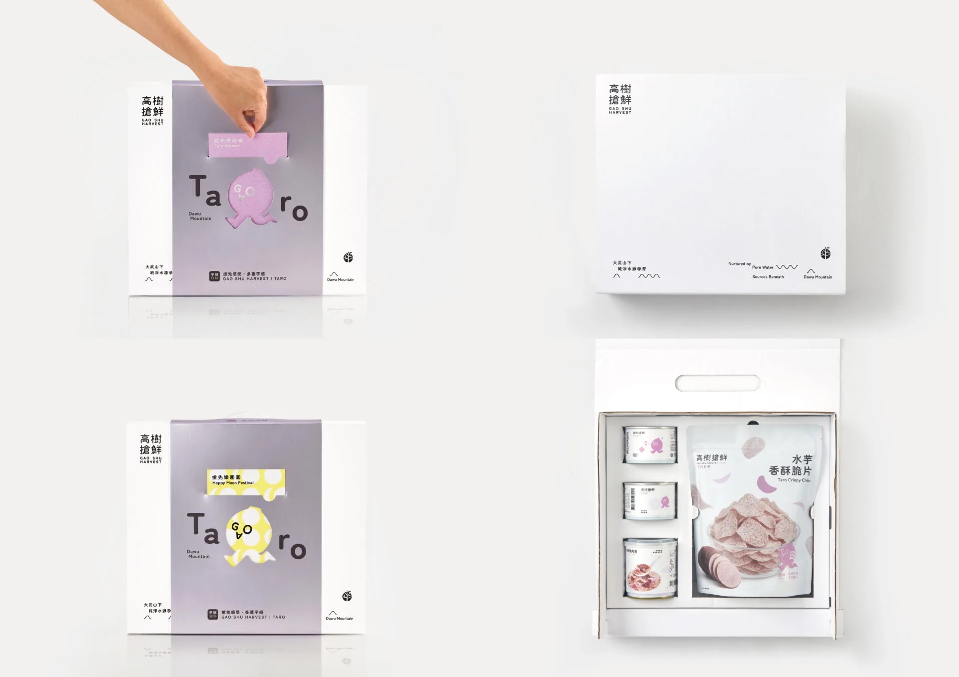 作品名稱:高樹搶鮮-芋頭禮品包裝Gaoshu Fresh First – Taro Gift Box作品類別:禮品包裝類設計:白水設計設計理念:以高樹水質保護區孕育的優質芋頭為核心,傳達「新鮮直送」的產地價值。包裝採三片式結構,提升農民組裝效率與運輸穩定性;以單色印刷降低成本與環境負擔,並透過可替換封套設計減少改版浪費。整體風格捨棄傳統老氣印象,轉化為清新純粹的產地識別語彙。