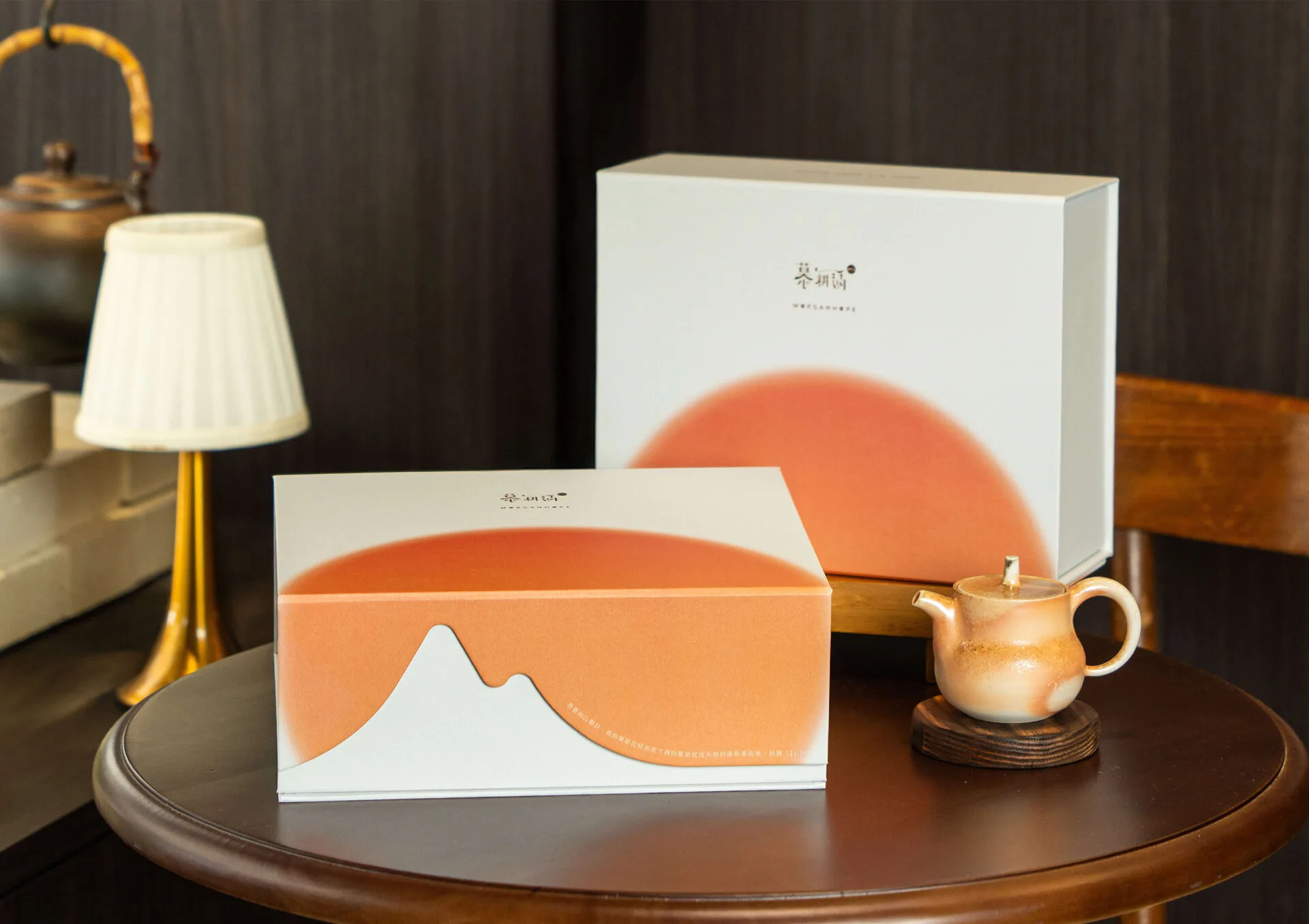 作品名稱:慕耕活 新向山舉目 茶葉禮盒作品類別:永續包裝類設計:宏吉盒藝設計理念:以台灣高山茶園地景為靈感,透過山型切面與橘色圖紋描繪夕陽映照山巒的景致。禮盒採可攤平式結構設計,突破傳統濕裱盒無法平放的限制,在運輸與倉儲過程中大幅降低體積,使用時再組裝成型,兼具結構強度與環保效率。內部採模組化內襯設計,可依不同產品更換配置以放置多元內容物,提升包裝彈性並減少材料浪費,將自然地景意象與永續思維融入茶禮設計。