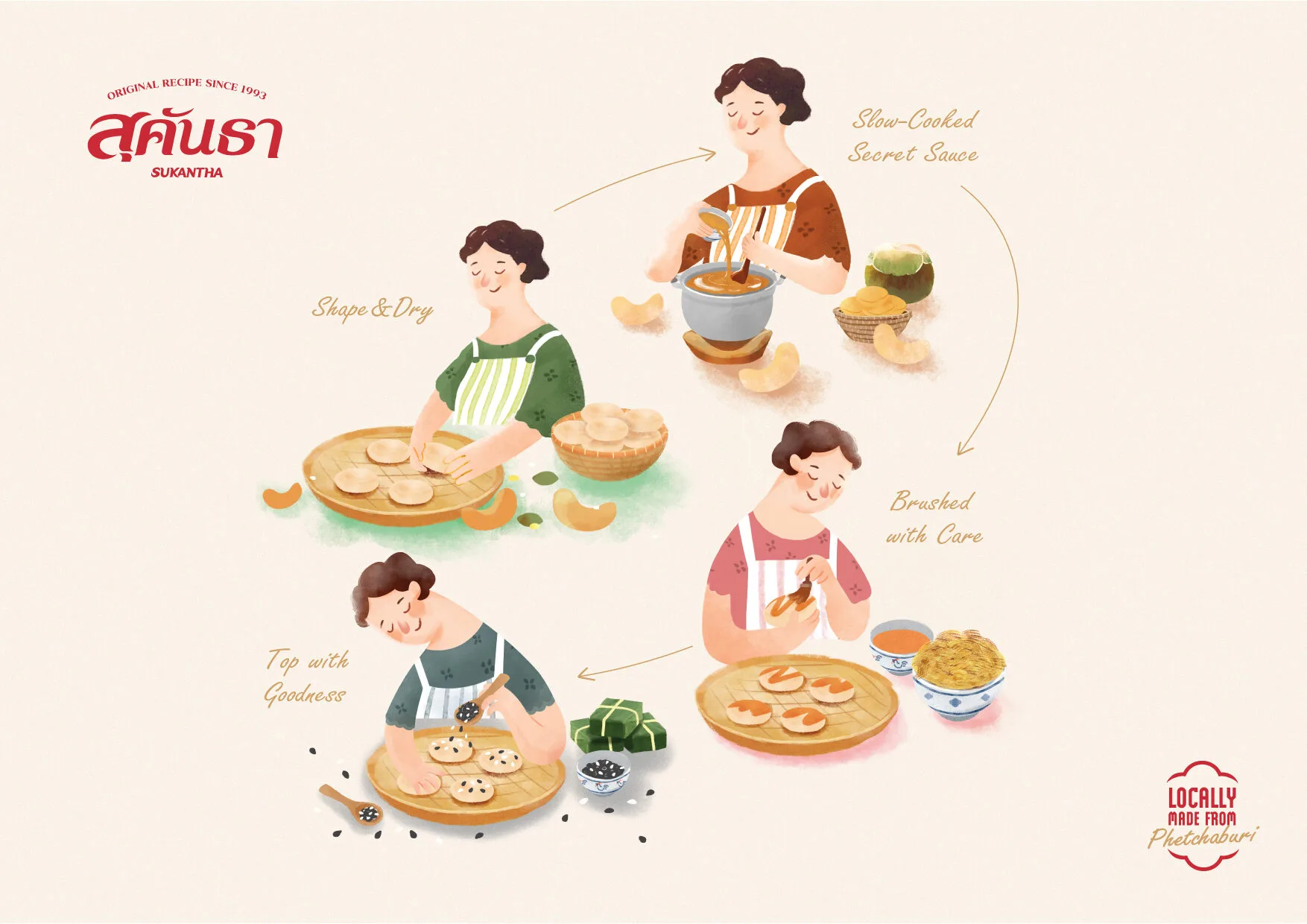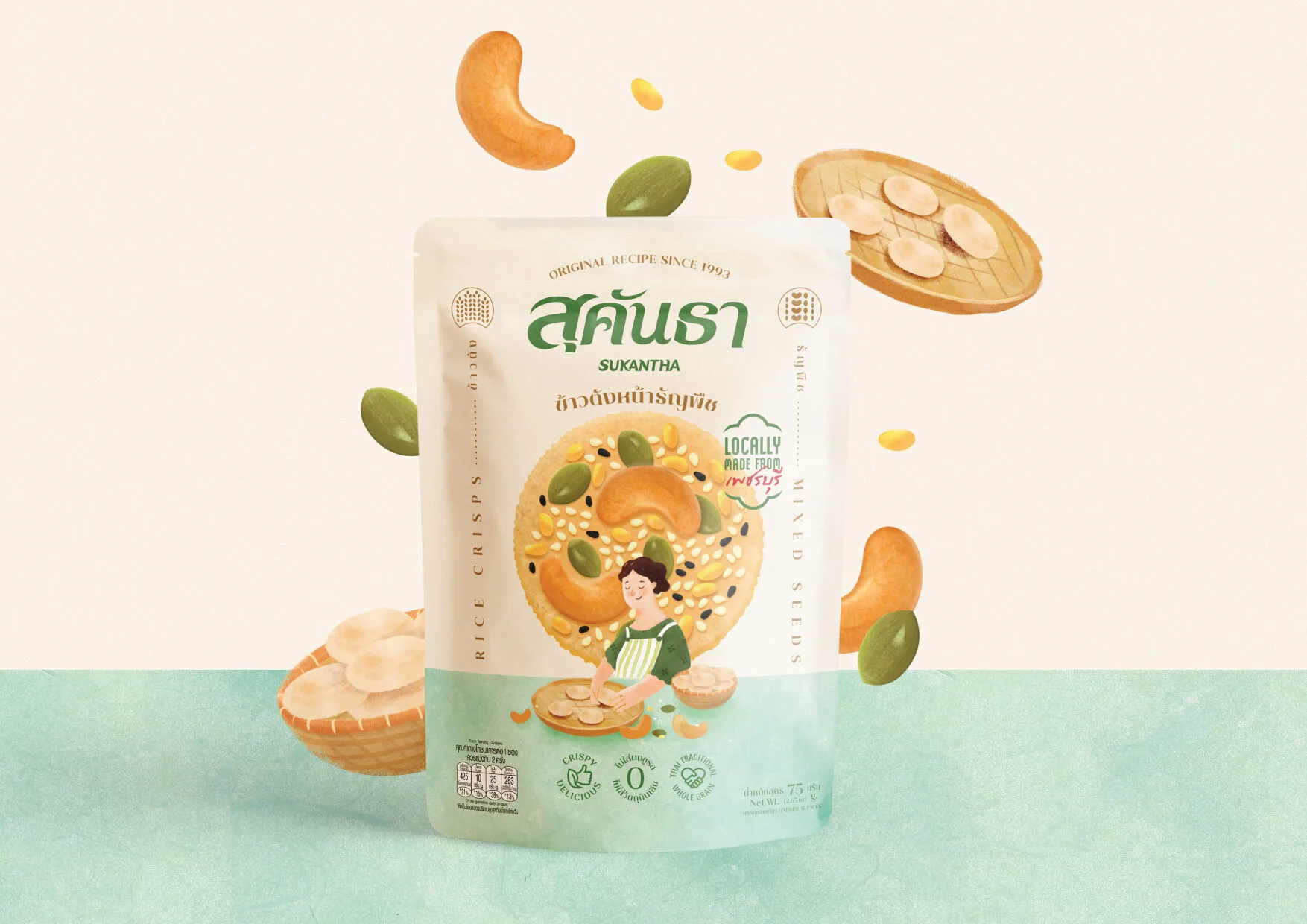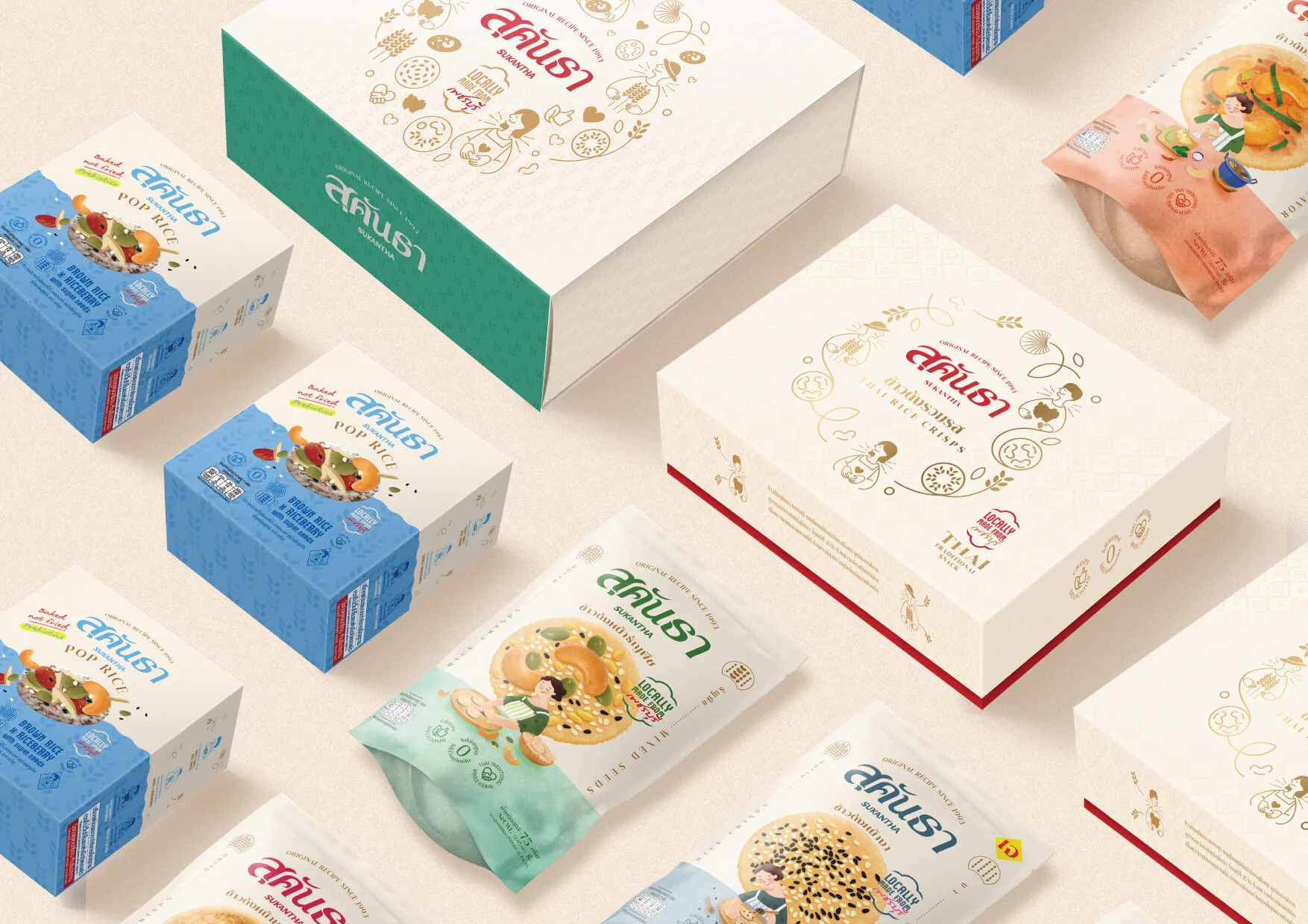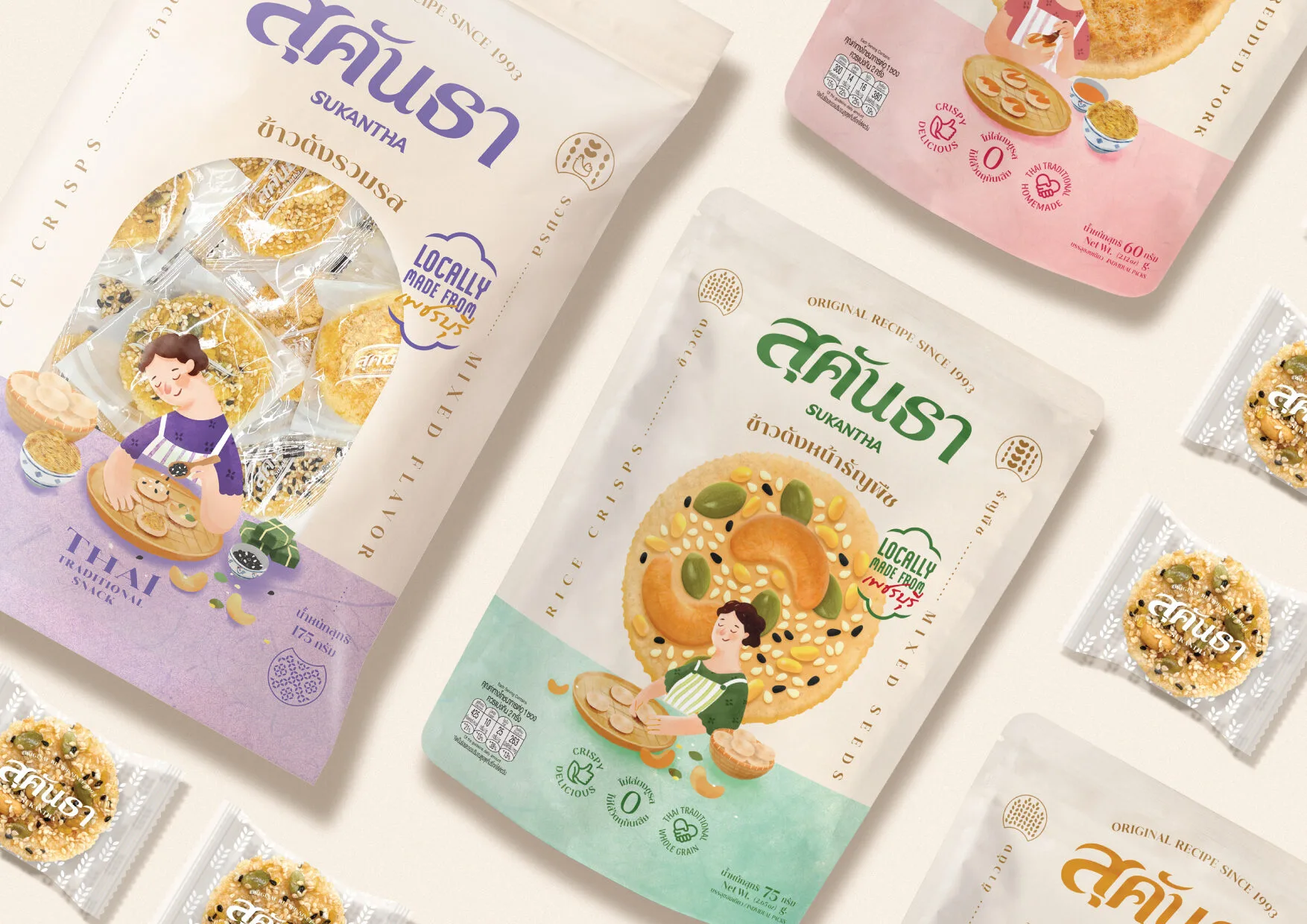Design Concept:Sukantha’s packaging was inspired by the owner’s childhood memories—coming home to the comforting sight of their mother making rice crisps with care. This story was developed